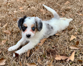 This little guy may be the runt of the litter, but what he lacks in size, he more than makes up for in personality. Captain is bursting with charm and confidence. His stunning blue merle coat paired with his heterochromia (one brown eye and one blue 😎) gives him a completely one-of-a-kind look you won’t forget!